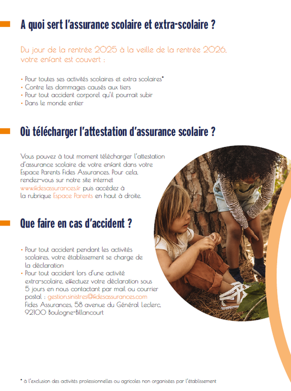 C'est une assurance en cas d'accident ou de dommage ayant lieu à l'école, sur le chemin de l'école ou lors des activités extra-scolaires de l'enfant.
