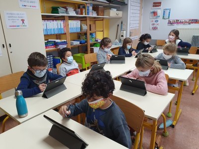 Depuis la rentrée 201ç, l'école s'est dotée de tablettes afin de diversifier les apprentissages et de répondre aux nouveaux programmes de l'Education nationale. Les enfants peuvent notamment expérimenter la programmation grâce à cet outil, financé en partie par l'A.P.E.L. .