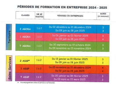 Calendrier des PFMP 2024-25