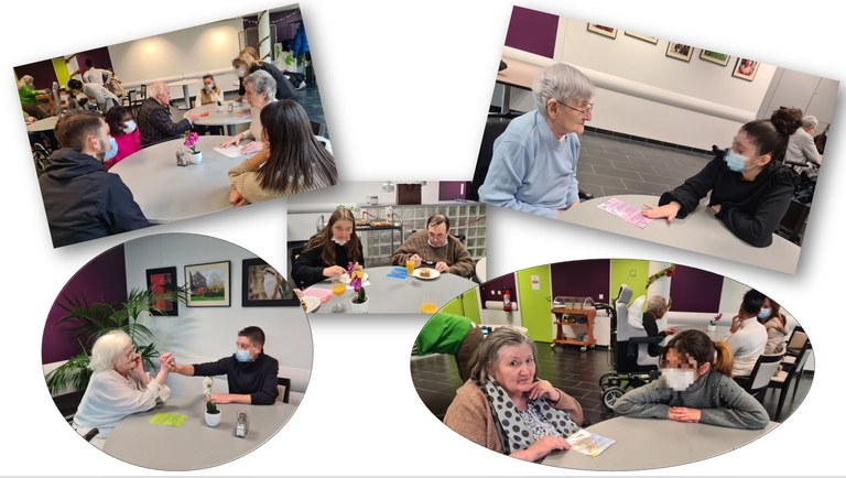 Pour commencer nous avons fait connaissance : une rencontre intergénérationnelle a été organisée pour permettre de mieux se connaître, cela a permis d'apporter de la joie, de profiter des échanges bienveillants, de partager un moment convivial et festif.